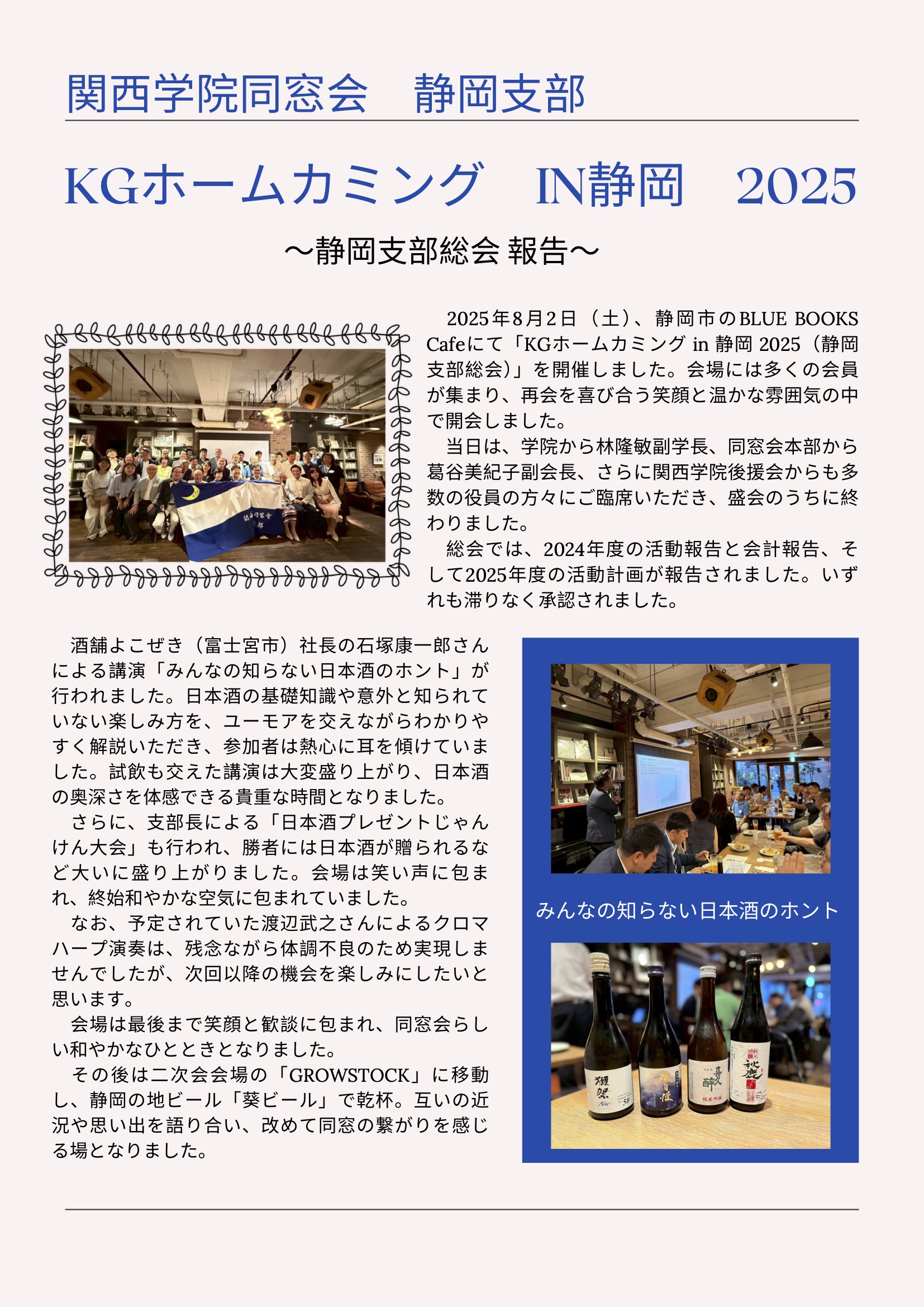 2025年8月2日(土) 、静岡市のBLUE BOOKS Cafeにて「KGホームカミング 2025 in 静岡 (静岡支部総会) 」を開催いたしました。