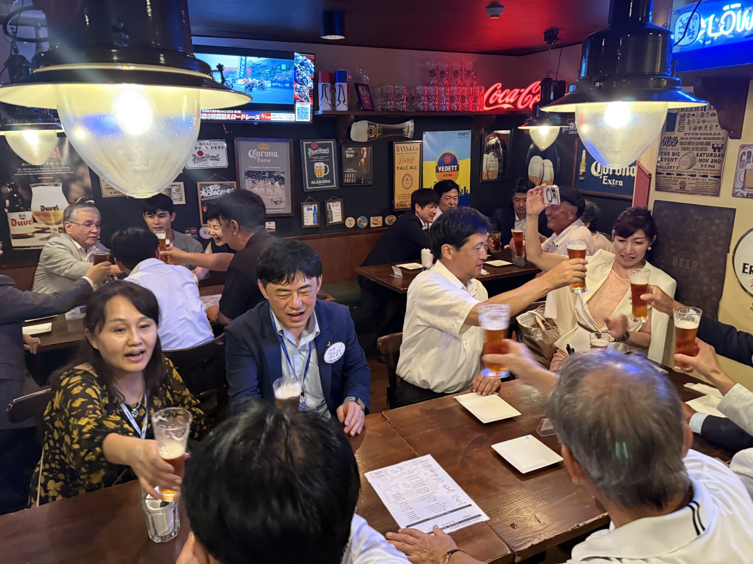 二次会会場は「GROWSTOCK」に移動し、静岡の地ビール「葵ビール」で乾杯。互いの近況や思い出を語り合い、改めて同窓の繋がりを感じる場となりました。